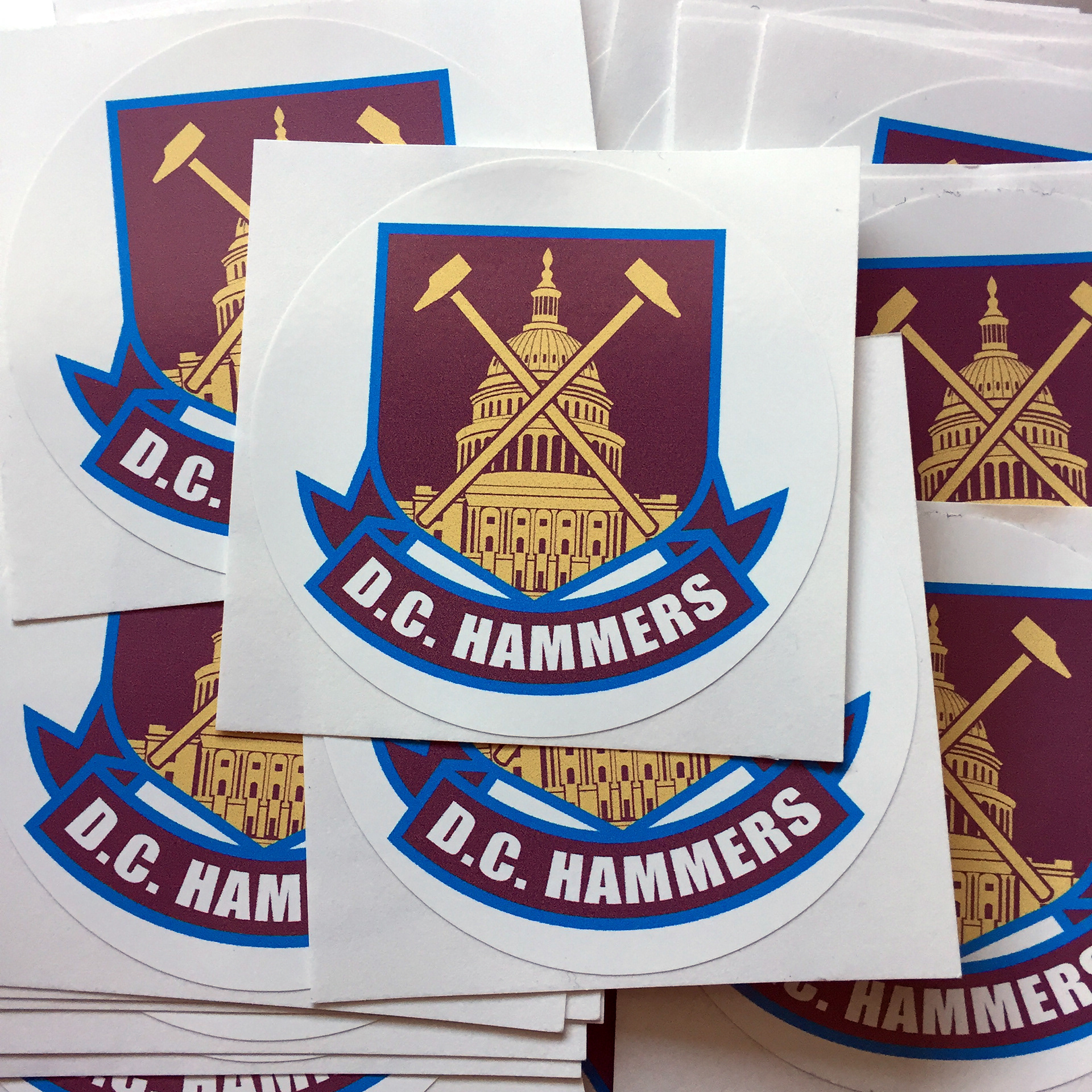 Logo for the D.C. Hammers, a West Ham United Supporter Club based in Washington, D.C. West Ham United are a British soccer team from East London founded by ironworkers with strong working class roots. This logo incorporates the shape from an older West Ham United crest, the crossed hammers West Ham is known for, and the iconic U.S. Capitol Building in Washington, D.C. to tie it all to the Nation's Capital. The colors used are claret and blue, the official colors of West Ham United. The logo was subsequently used for enamel pins, embroidered patches, and vinyl stickers. For more information check out www.dchammers.com.